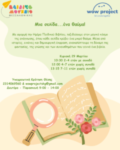 Με αφορμή την Ημέρα Παιδικού Βιβλίου, ταξιδεύουμε στον μαγικό κόσμο της ανάγνωσης, όπου κάθε σελίδα κρύβει ένα μικρό θαύμα. Μέσα από ιστορίες, εικόνες και δημιουργική έκφραση, ανακαλύπτουμε τη δύναμη της φαντασίας, της γνώσης και των συναισθημάτων που γεννά ένα βιβλίο.