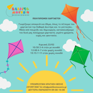 Μέσα από παιχνίδι και δημιουργία, κατασκευάζουμε τον δικό μας πολύχρωμο χαρταετό, γεμάτο χρώματα, ευχές και φαντασία.